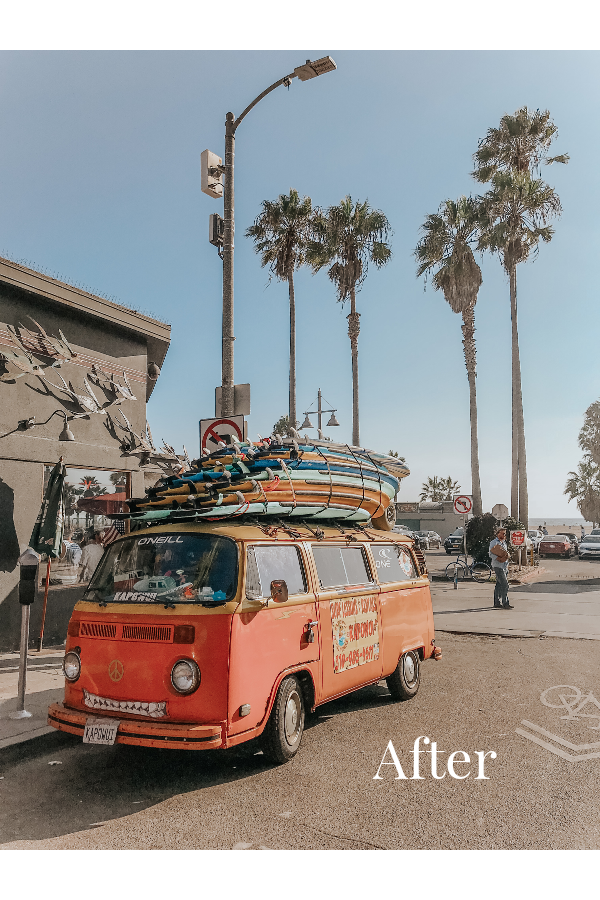 This preset was my first preset launched and my best-seller. It works very well with both iPhone and professional photos in LR! It captures the best of California- turquoise blues with desaturated colors.
